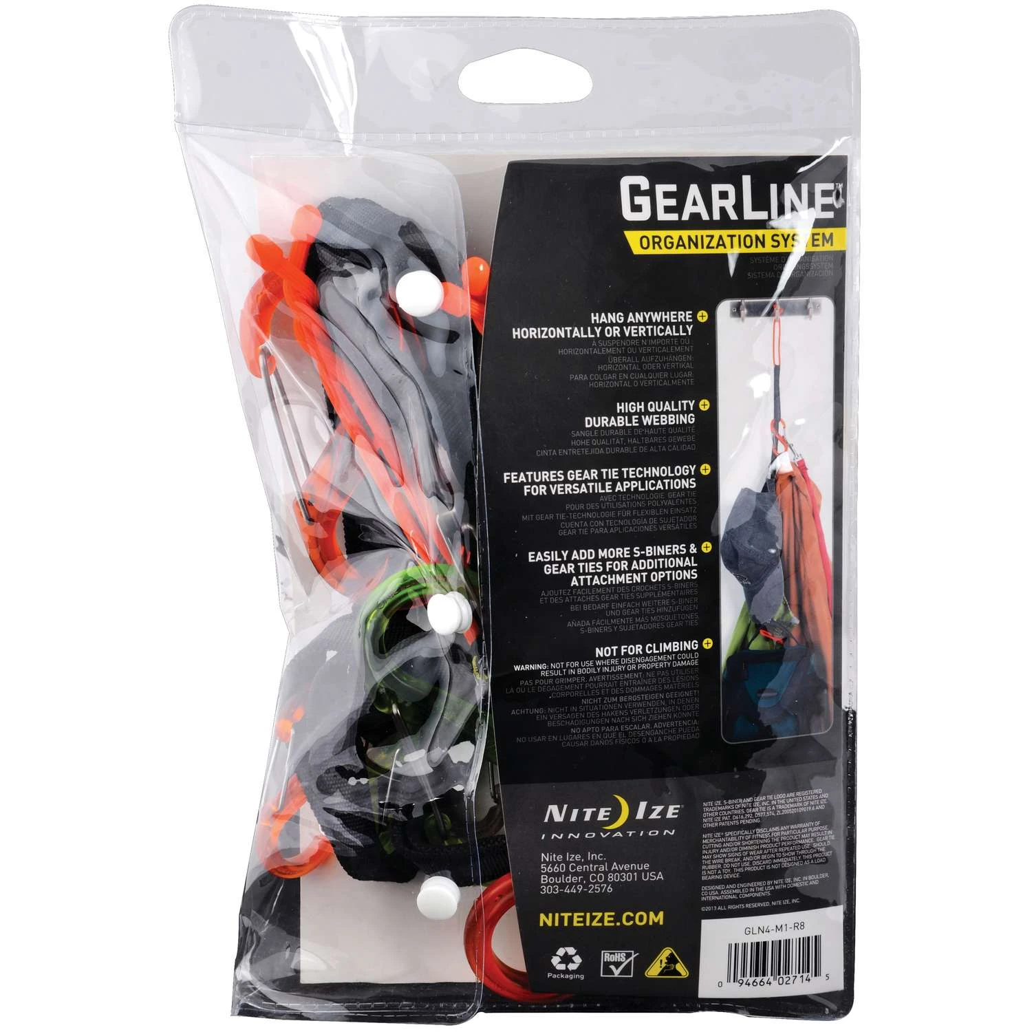 Made of high quality, wear-resistant webbing, the Gear Line Organization System features sturdy S-Biner double-gated carabiner clips in alternating sizes, each attached to its own individual sturdy loop, along with Gear Tie Reusable Twist Ties on each end. Just attach whatever tools, gear, gadgets, or clothing you want to each S-Biner and hang the Gear Line to any hook or knob – wherever it will be most convenient. Go vertical when you want to maximize storage and save wall space. Hang horizontally to keep things easily accessible at eye level or quickly dry out gear. Each S-Biner clips securely closed and unclips easily for fast, convenient attachment and detachment, and can easily be interchanged. * High quality durable webbing 12″ Gear Tie ends for versatile attachment Includes five #2 and five #4 plastic S-Biners Double gated S-Biner carabiners clip securely and easily